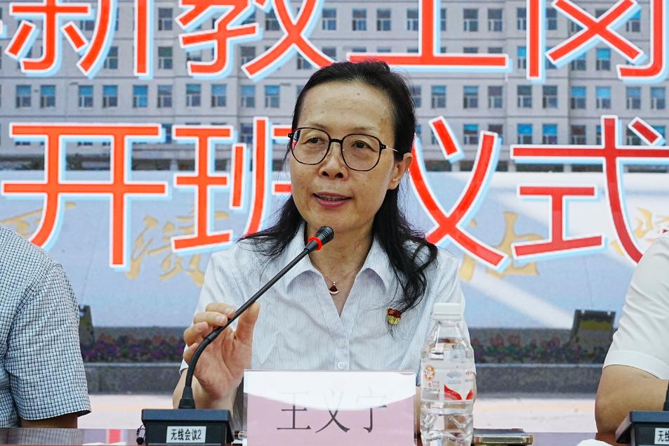 仪式开始,王义宁校长代表学校对136名新入职教工表示欢迎,同时对新教师如何成为一名合格的大学教师给出了具体建议。她指出,教师不仅要具备扎实的专业知识,还应该涉猎教育学、心理学等方面的知识,增加知识储备,扩展知识的广度,提升信息技术应用能力,提高整体素养;教师不仅要搞好教学,还要多做研究,关注专业发展动态和前沿,以增加知识的深度。她希望新教师能够尽快适应新身份,完成从关注自己到关注学生、再到关注课堂的转变,并基于学生的需求完成课程目标的设计。她鼓励新教师把个人的发展与学校的发展结合起来,在个人专业成长的同时,为学校发展贡献力量。最后,王校长祝福新教师们在教师的路上越走越幸福。
