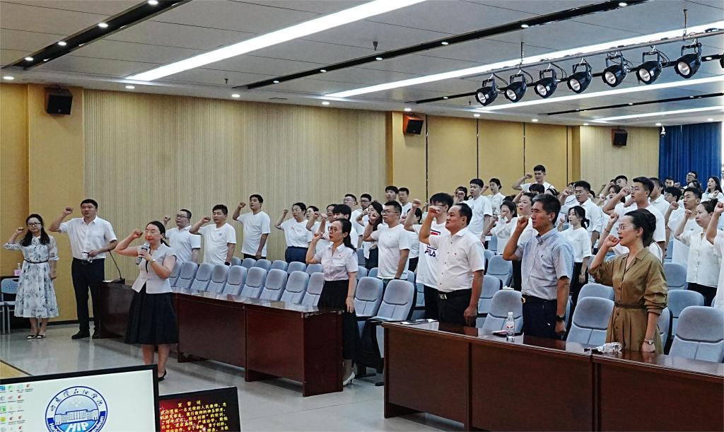 开班仪式的最后,郑彩飞老师带领全体新入职教师进行宣誓,现场气氛庄重严肃,责任感、使命感油然而生。