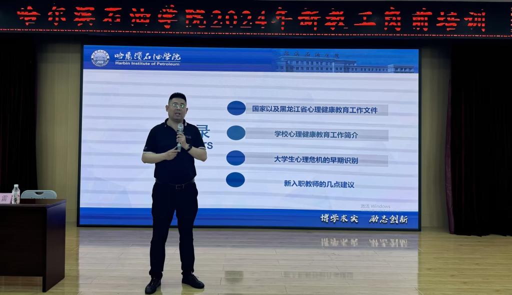 彭雷老师以《你的眼睛就是尺--大学生的心理危机的识别》为题,结合自身多年的工作经验,从“国家的心理相关文件解读、学校四级工作网络、早期学生心理危机的识别以及教师人生有智慧”四方面进行了阐述,使新教师对学生的心理健康问题有了更加深入的了解和认知,增强了快速识别学生心理健康问题的敏感性,对于日后帮助学生顺利完成学业有着非常重要的作用和意义,同时也增强了新入职教师应对压力与挑战的决心,促进了新入职教师尽快完成角色转换,以阳光、快乐、积极的心态投身到今后的工作中。