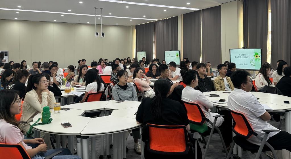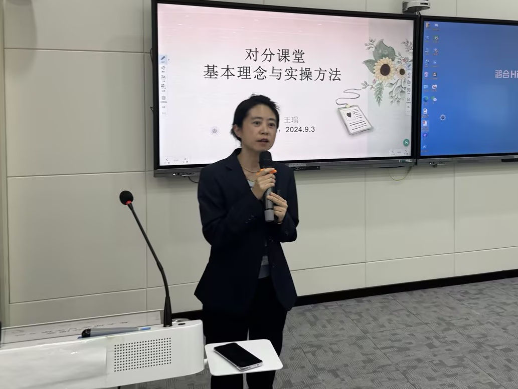 最后,王瑞老师以本次培训内容为例和老师一起进行了实操练习,让老师们切身体验到了如何在自己的教学中应用对分课堂。现场讨论气氛热烈,在对话环节中很多老师提出了精彩的问题,王瑞老师一一进行了分享和解答。
