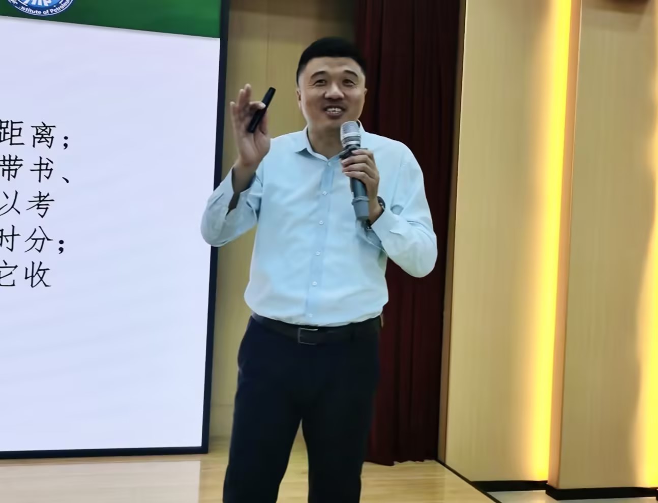 培训会最后,他向新教师提出希望,他希望:新教师能够热爱教师职业,把教书育人当作毕生不懈的追求,像对待自己的亲人一样培养我们的学生,让自己永葆初登讲台的那份激情与干劲!