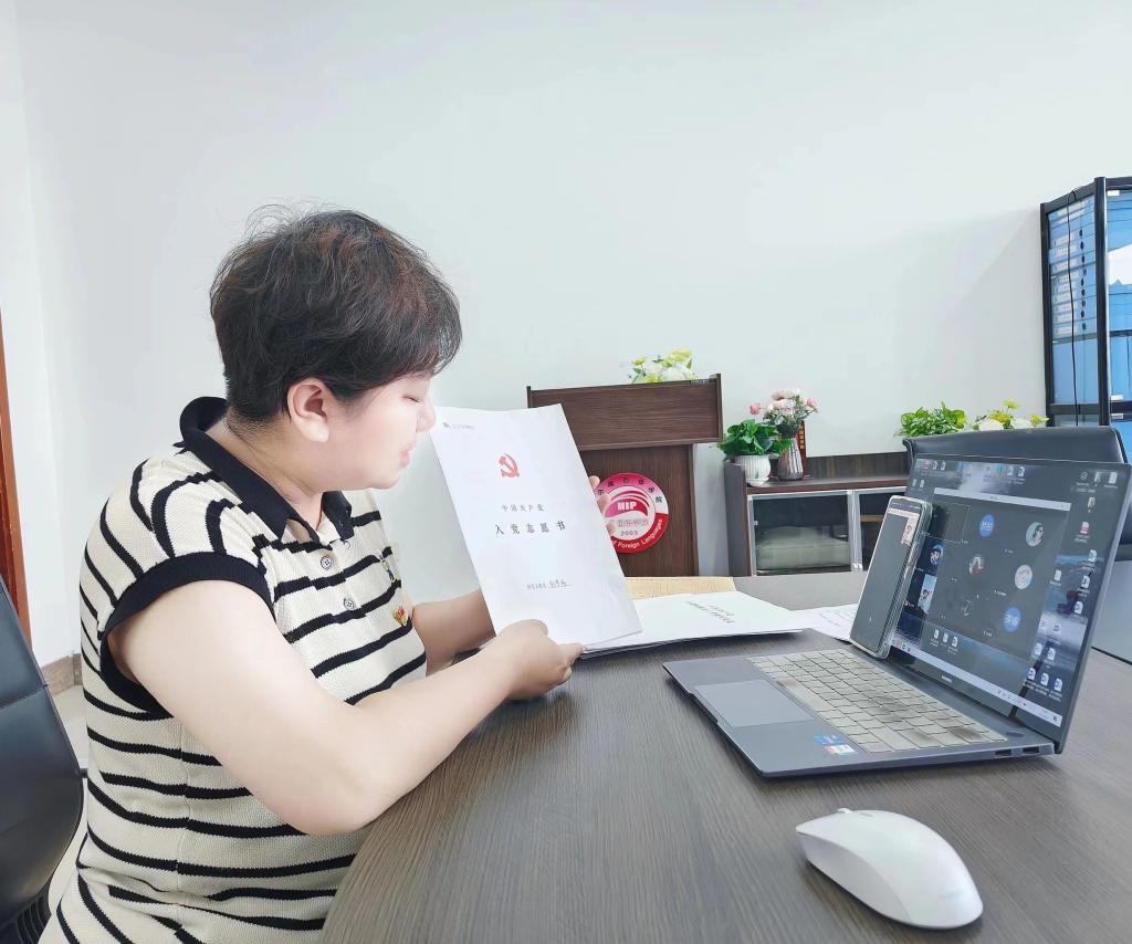 2024年6月20日,外国语学院学生党支部书记赵连琦在第一教学楼706党员会议室组织开展“一卡一课三重温”党性教育活动。通过向2024届毕业生党员赠送毕业生党员提示卡,聆听党课,并进行重温入党志愿书、重温入党谈话、重温入党誓词的“三个重温”主题党日活动,教育引导毕业生党员牢固树立“四个意识”,坚定“四个自信”,做到“两个维护”,始终在思想上、政治上、行动上同以习近平同志为核心的党中央保持一致。
