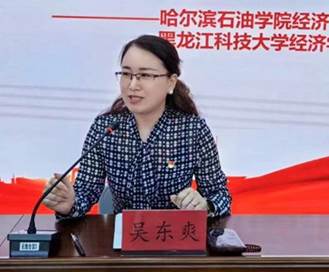为进一步加强基层党组织建设,推进优势互补和抱团发展,实现党建提质增效、全面过硬的工作目标,6月12日,我院与黑龙江科技大学经济学院在威尼斯官网第一教学楼518会议室携手开展党建结对共建主题党日活动,黑龙江科技大学经济学院党委书记雷金屹、党委副书记邬丽群,我院党总支书记吴东爽出席,共建双方师生党员代表参加,活动由我院党总支副书记主持。