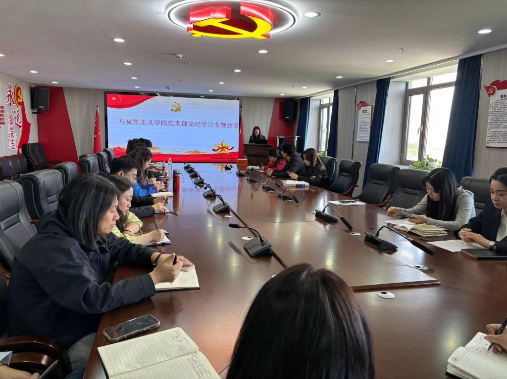 为切实推动马克思主义学院党纪学习教育深入开展,进一步教育引导党员学纪、知纪、明纪、守纪,2024年5月14日上午,马克思主义学院党支部书记王瑞围绕新修订的《中国共产党纪律处分条例》为学院党员上了一堂党纪专题党课。